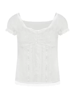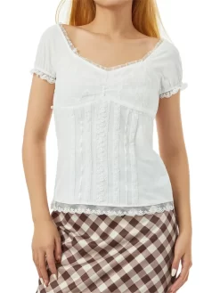 Women Summer Tops Y2K Aesthetic Retro Casual Clothes Short Sleeve Square Neck Lace Ruffle Tops and Blouses Shirts